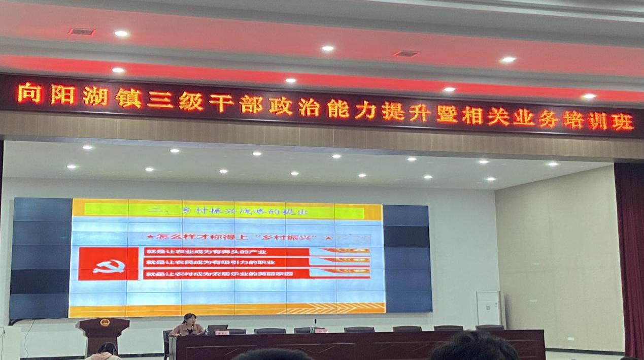 2022年4月29日,我院“理论热点面对面示范点”咸宁市咸安区向阳湖镇为提升干部政策水平、业务素质和工作能力,举办了“镇、村、组三级干部政治提升暨相关业务培训班”,湖北青少年思想道德教育研究中心和湖北大学马克思主义学院为向阳湖镇村党员干部集中宣讲乡村振兴战略。咸安区向阳湖镇党委书记陈伟、咸安区向阳湖镇各村(社区)“两委”、组长及镇直部门负责人共262人参加了此次培训会。