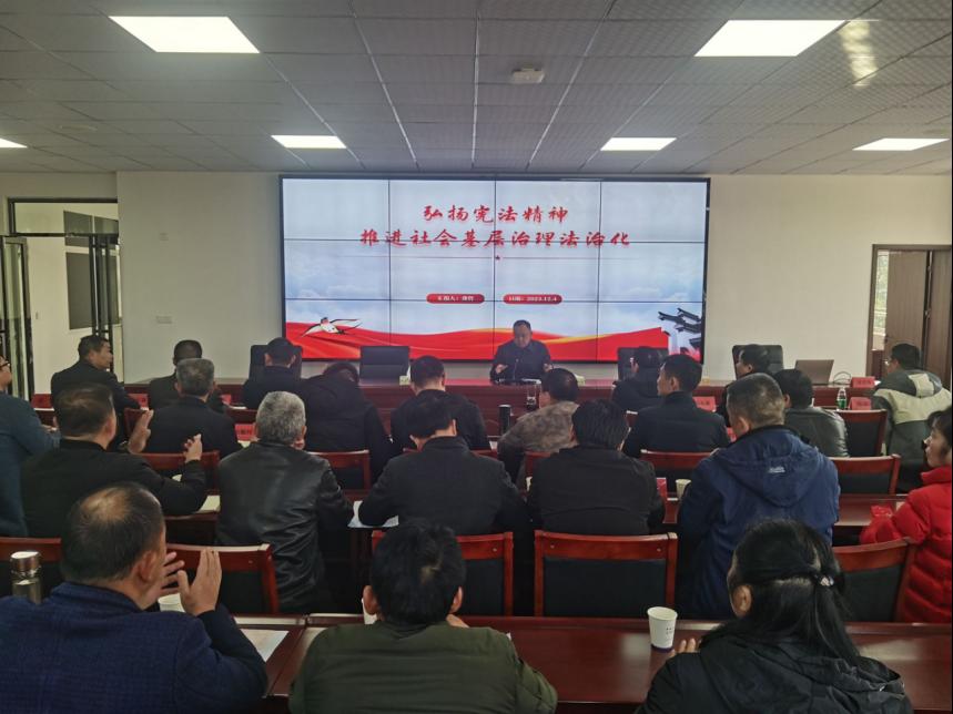 在讲座中,湖北大学法学院副教授,硕士研究生导师龚哲以《弘扬宪法精神推进社会基层治理法治化》为题,从国家治理体系和治理能力现代化、国家治理体系和治理能力现代化的宪法保证、社会基层治理法治化路径等三方面,结合基层社会治理的实际案例,对全体与会人员进行了详细辅导,全面生动地阐释了宪法对基层治理现代化的合法性保障。
