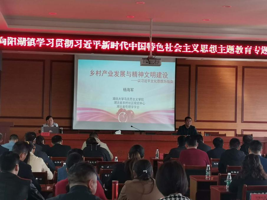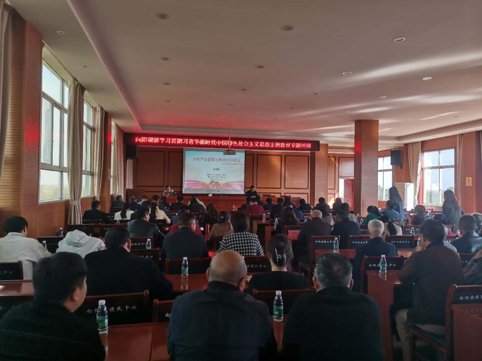(通讯员 邢肖依)2023年11月6日,向阳湖镇举办“学习贯彻习近平新时代中国特色社会主义思想主题教育专题培训”,中心骨干教师杨海军老师受邀做了“乡村产业发展与精神文明建设”主题宣讲。会议主会场设在向阳湖镇便民服务大厅四楼会议室,各村会议室、宝塔社区会议室设分会场,全体镇干部、村(社区)两委干部、国土所、林业站负责人、各村(社区)党员参加了宣讲报告会。报告会由向阳湖镇党委书记陈伟同志主持。