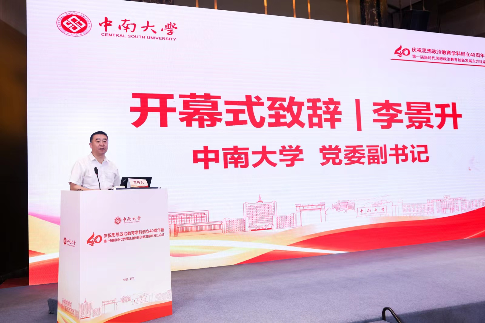 论坛开幕式由中南大学马克思主义学院院长曹清燕教授主持。中南大学党委副书记李景升出席并致辞,他对与会专家表示热烈欢迎,指出思想政治教育学科40年来的发展为党和国家事业发展提供了重要的智力支持和理论支撑。面对新时代新使命新任务,将继续以习近平新时代中国特色社会主义思想为指导,深入贯彻落实党的教育方针和立德树人根本任务,以更高的标准、更严的要求、更实的举措,推动思想政治教育内涵式发展。